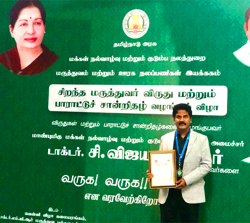 Best Doctor Award - 2018 by Tamilnadu Government.