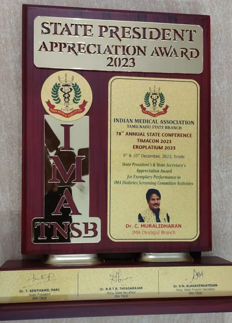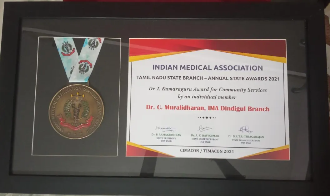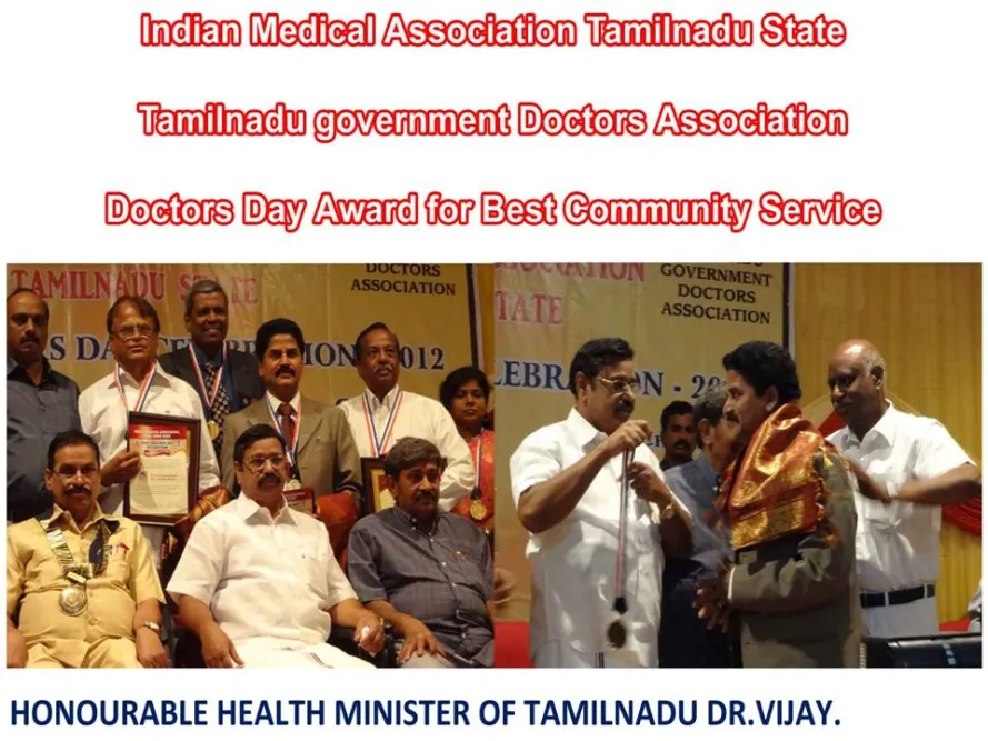 Best Doctor Award by IMA Tamilnadu State Branch in 2012.