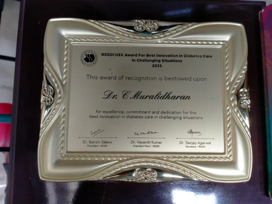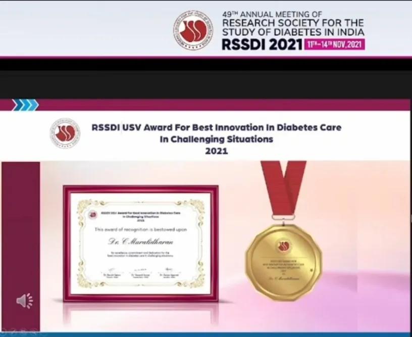 RSSDI - USV Award for best Innovation in Diabetes Care in Challenging Situation 2021.